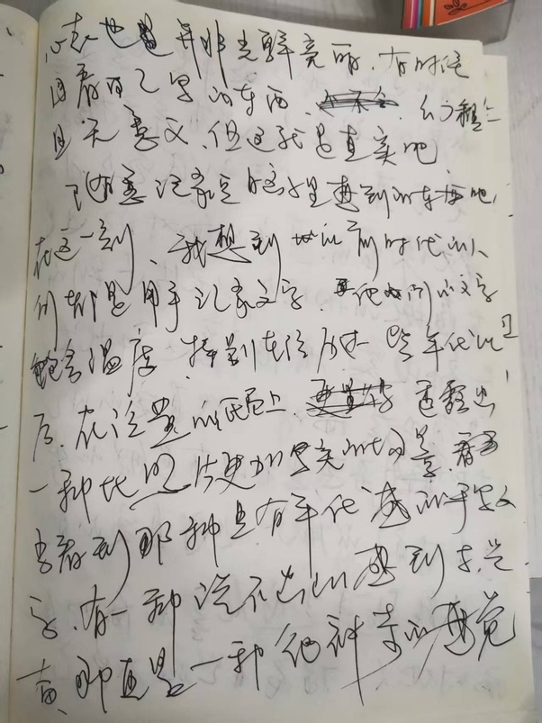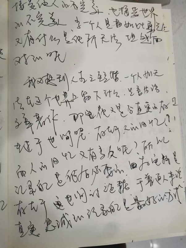 Nowadays, everyone uses computers and mobile phones, and handwritten words are rare. However, I still occasionally write a little in my diary by hand because handwritten words have more warmth than electronic text. They can also express my emotions and state of mind through the handwriting, and of course, they can also indicate where I wrote them,hahahhaa. For example, The following diary were written while I was camping in the mountains, lying in my tent. I wrote wherever I wanted, in whatever position I like. Of course, only I can probably recognize all of these handwritten words; other Chinese people can only recognize about 80% because they are so illegible.