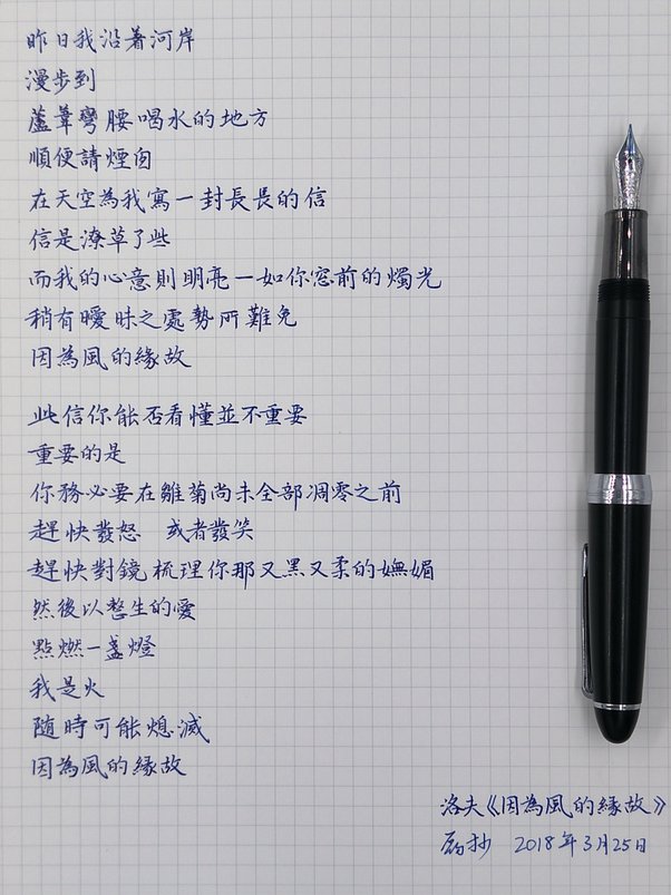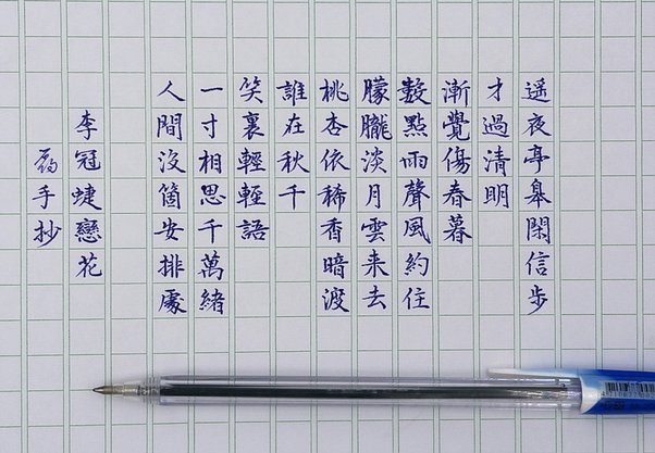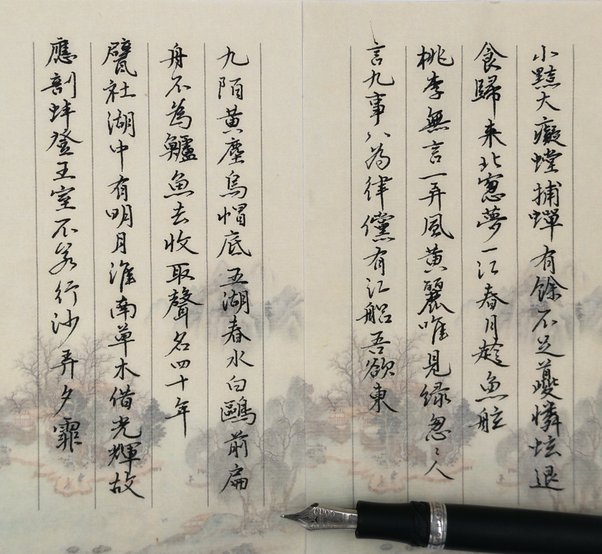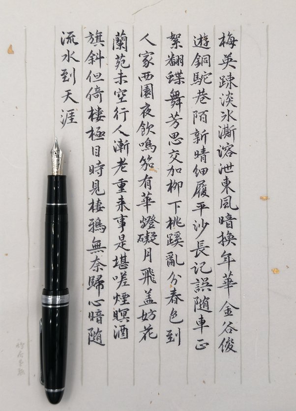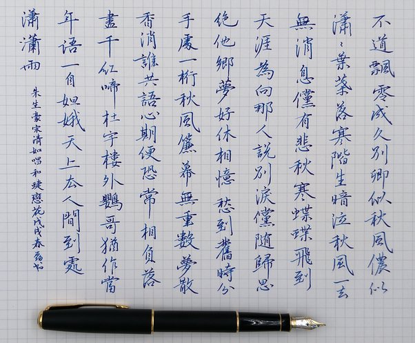I am a pen calligraphy enthusiast, which means, I write calligraphic works using pens (fountain pens and pens meant for daily use, as compared to the more traditional brush calligraphers). If I write Chinese for aesthetic purposes, my handwriting can look like this: