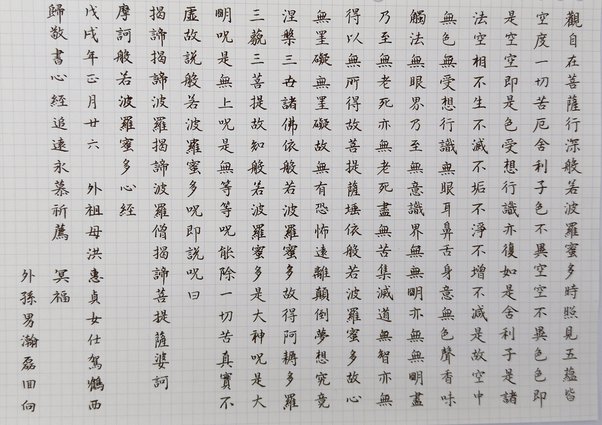(Formal script, top to bottom, right to left format, Prajna Paramita Sutra)