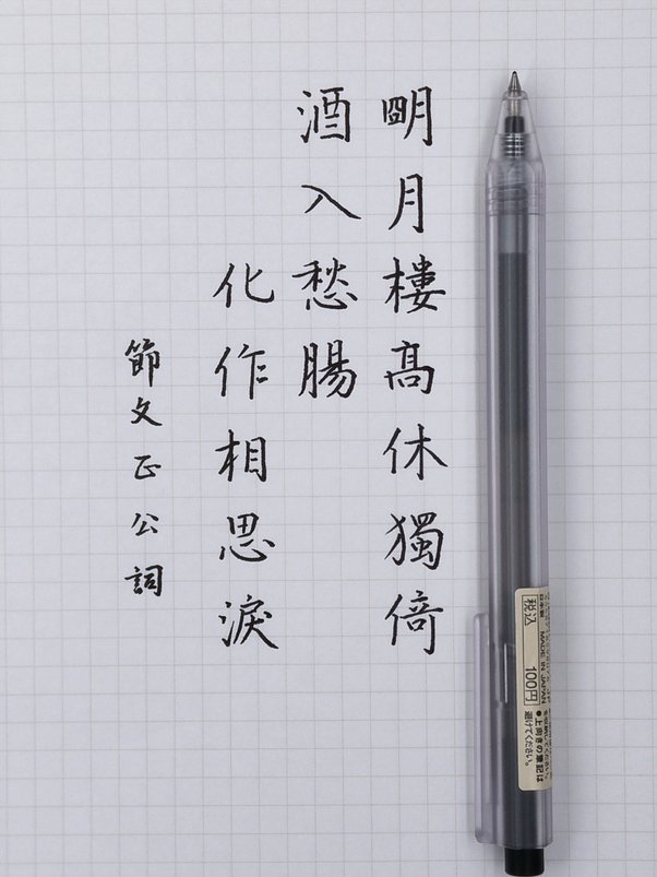 Who says gel pens aren’t good for writing Chinese? I proudly present, my $1.60 muji gel pen (formal script, top to bottom, right to left)